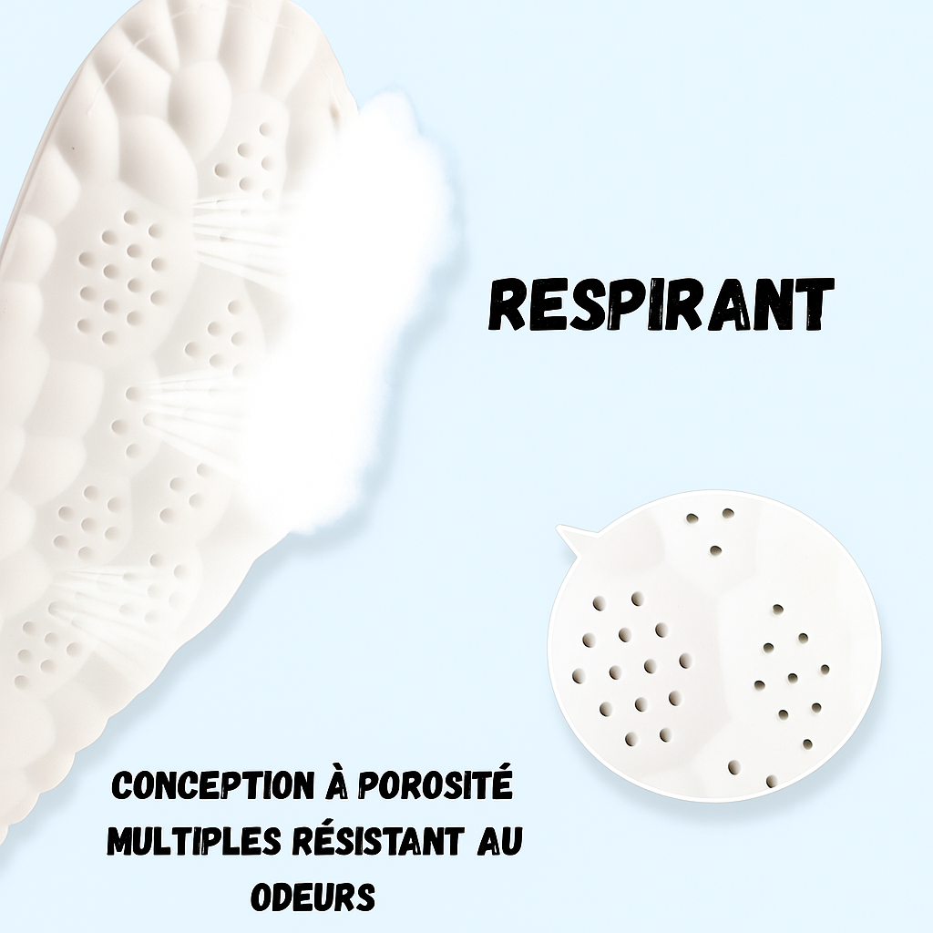 Grâce à sa conception à porosité multiple, cette semelle innovante assure une ventilation optimale pour garder vos pieds au frais et au sec tout au long de la journée. Son matériau spécialement étudié est résistant aux odeurs, offrant ainsi un confort durable et hygiénique.
